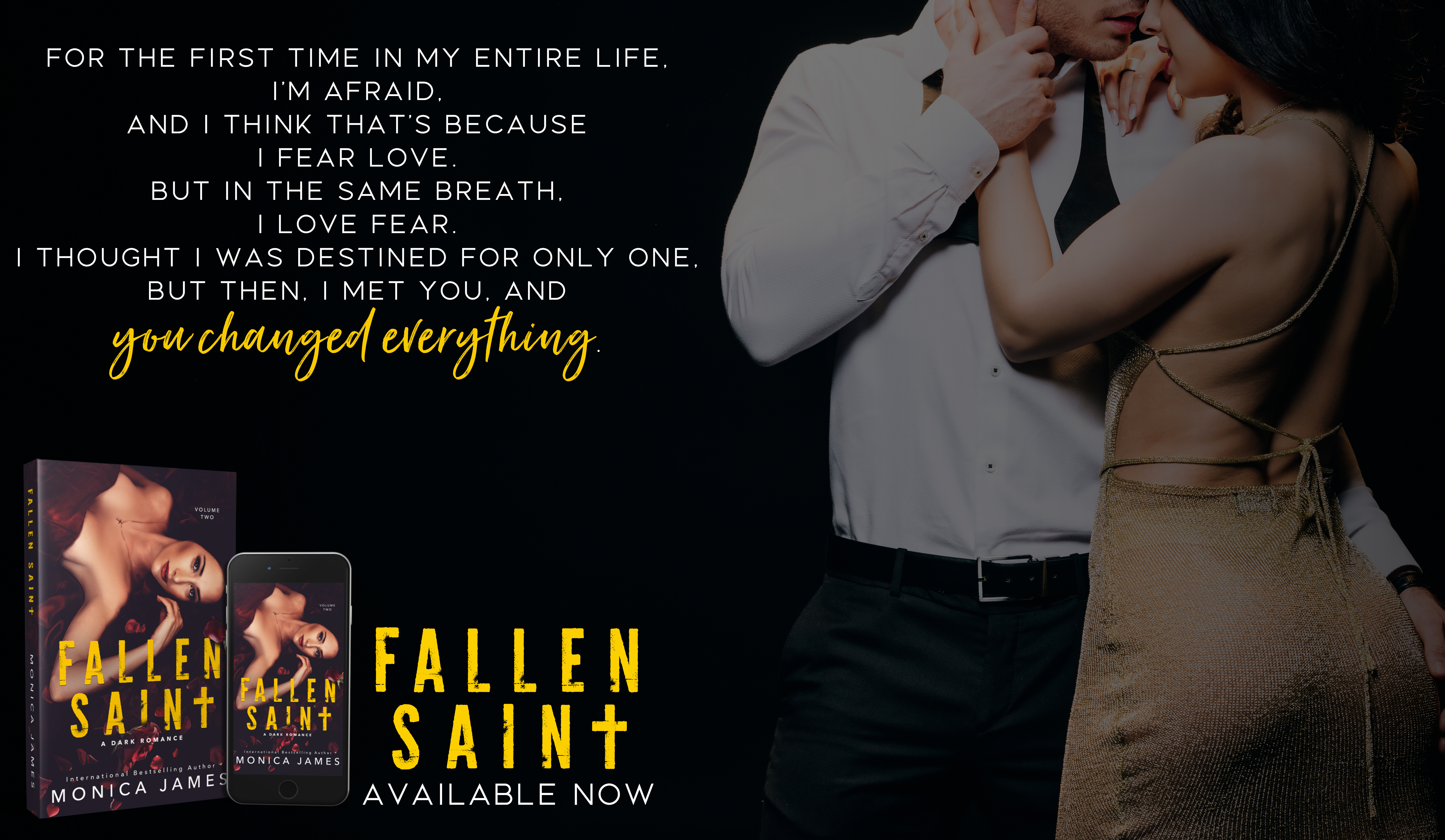 Saint, the man who was once a sinner, is my only salvation. What was forbidden now gives me hope that there is light in the darkness. He will risk everything to set me free.
